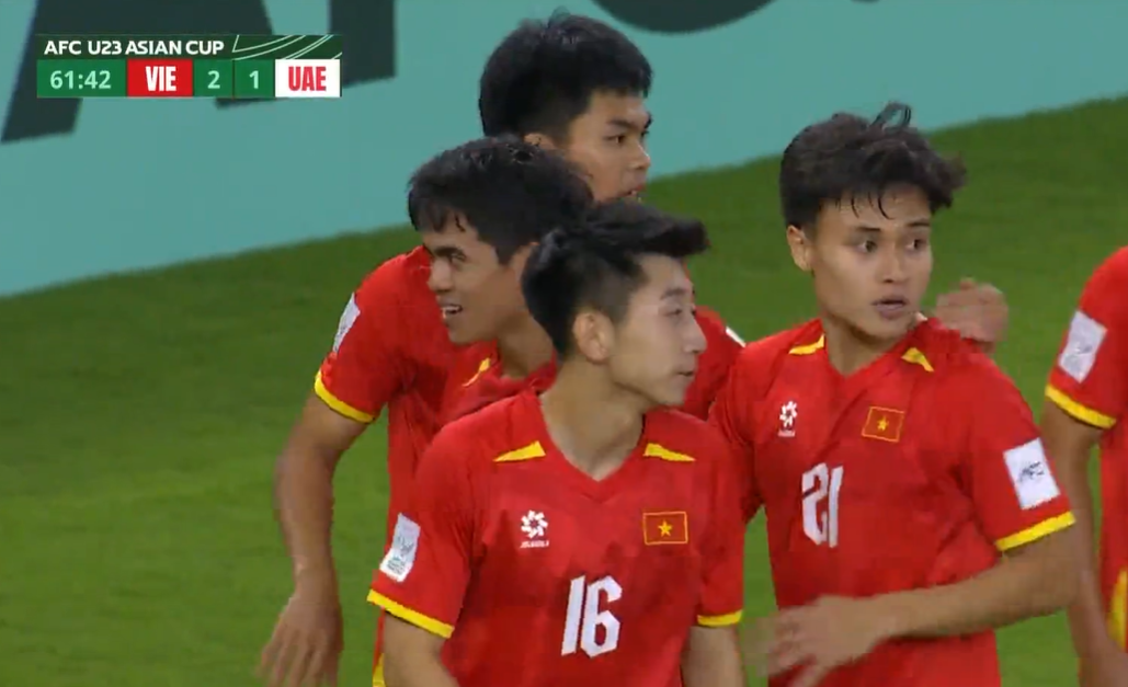 比赛进入下半场,越南队踢得简洁高效,又是领先的一方。第62分钟,阮庭北禁区内接到队友的传中之后头球后蹭破门,帮助越南队2-1再度领先,但阿联酋队又一次快速扳平比分,也是边路传中的方式,第68分钟,门哈利头球顶入远角得手。