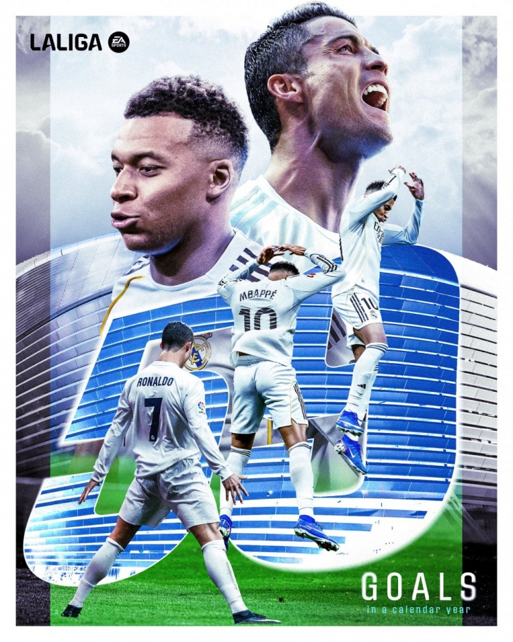 三天后,在欧冠对阵曼城的比赛中,姆巴佩没有获得出场机会。但在2025年皇马最后三场比赛中,他全部打满90分钟,最终追平了C罗保持的俱乐部自然年进球纪录——59个。
